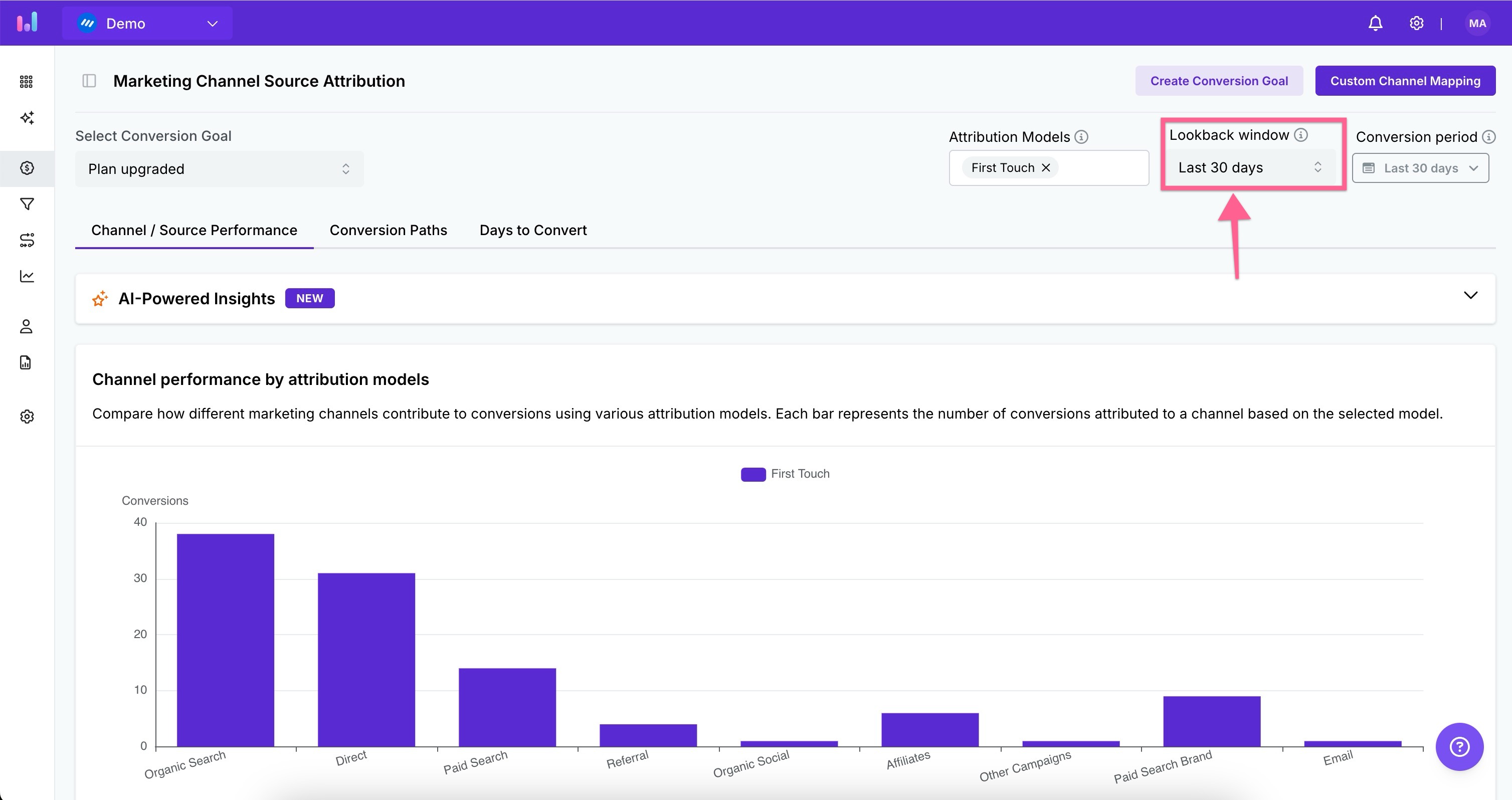 Adjustable attribution windows – Set custom time frames (like 30 or 60 days) to capture all relevant interactions that fit your sales cycle.