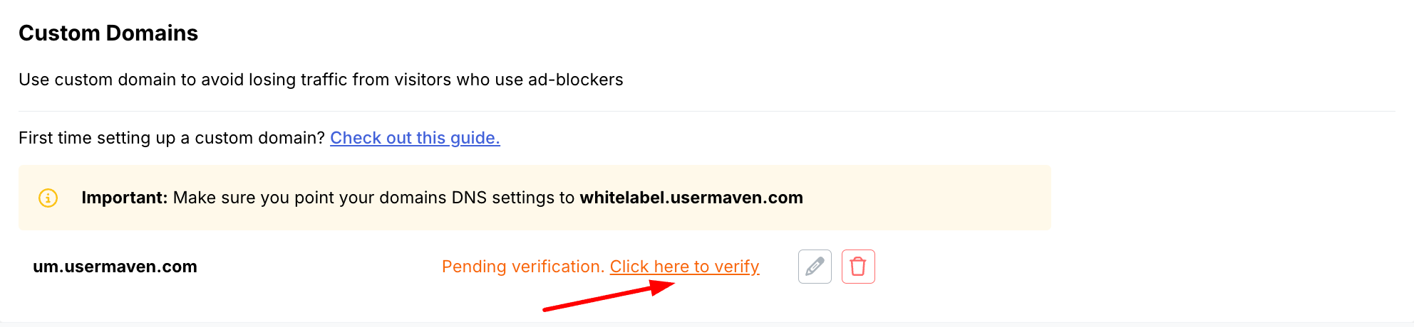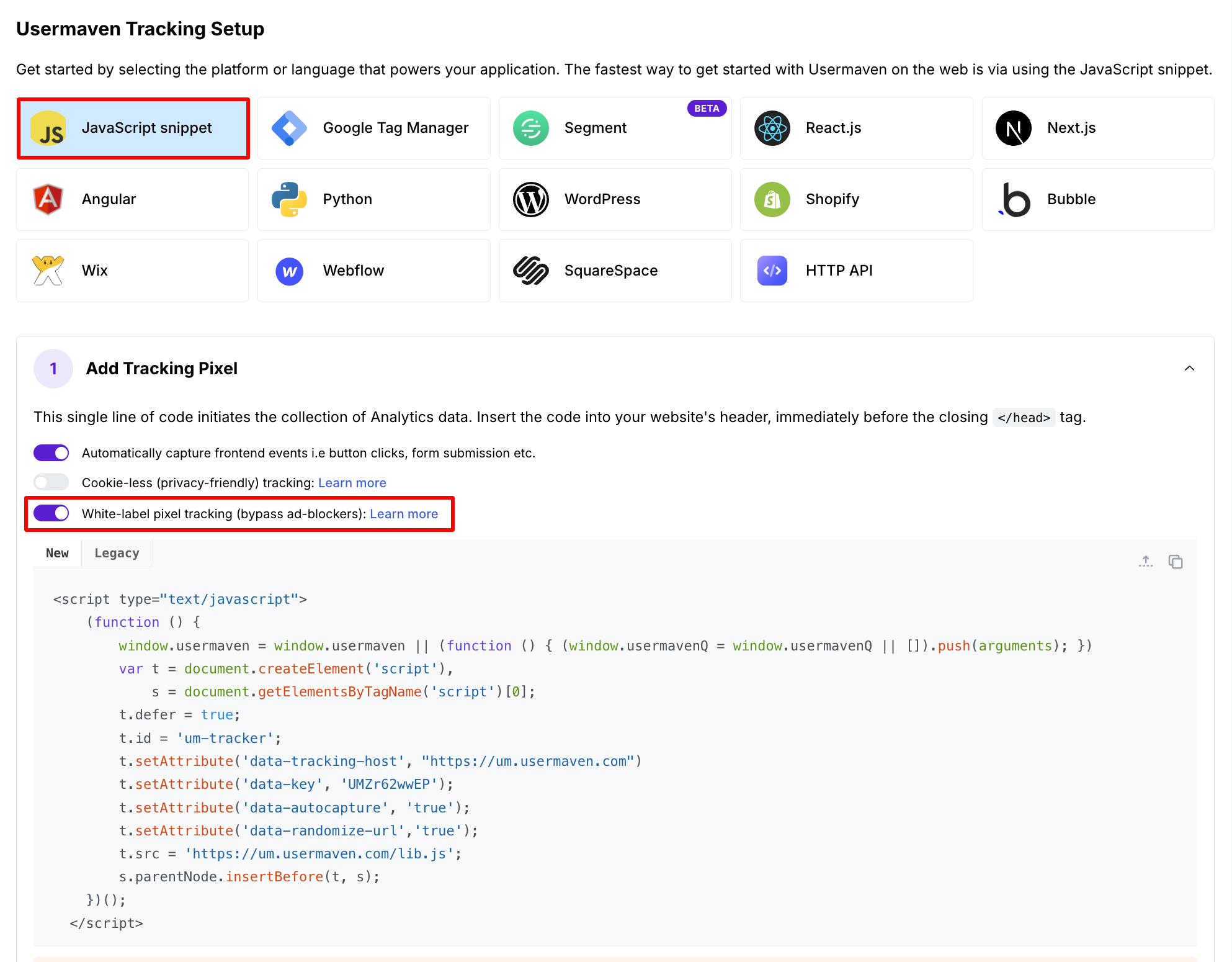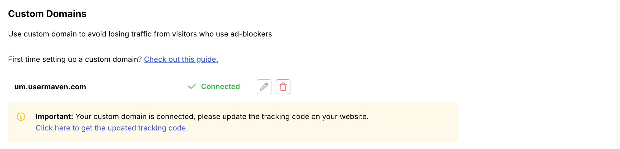 Important: If you installed the tracking script before setting up white-labeling, make sure to replace it with the updated version that includes your custom domain.