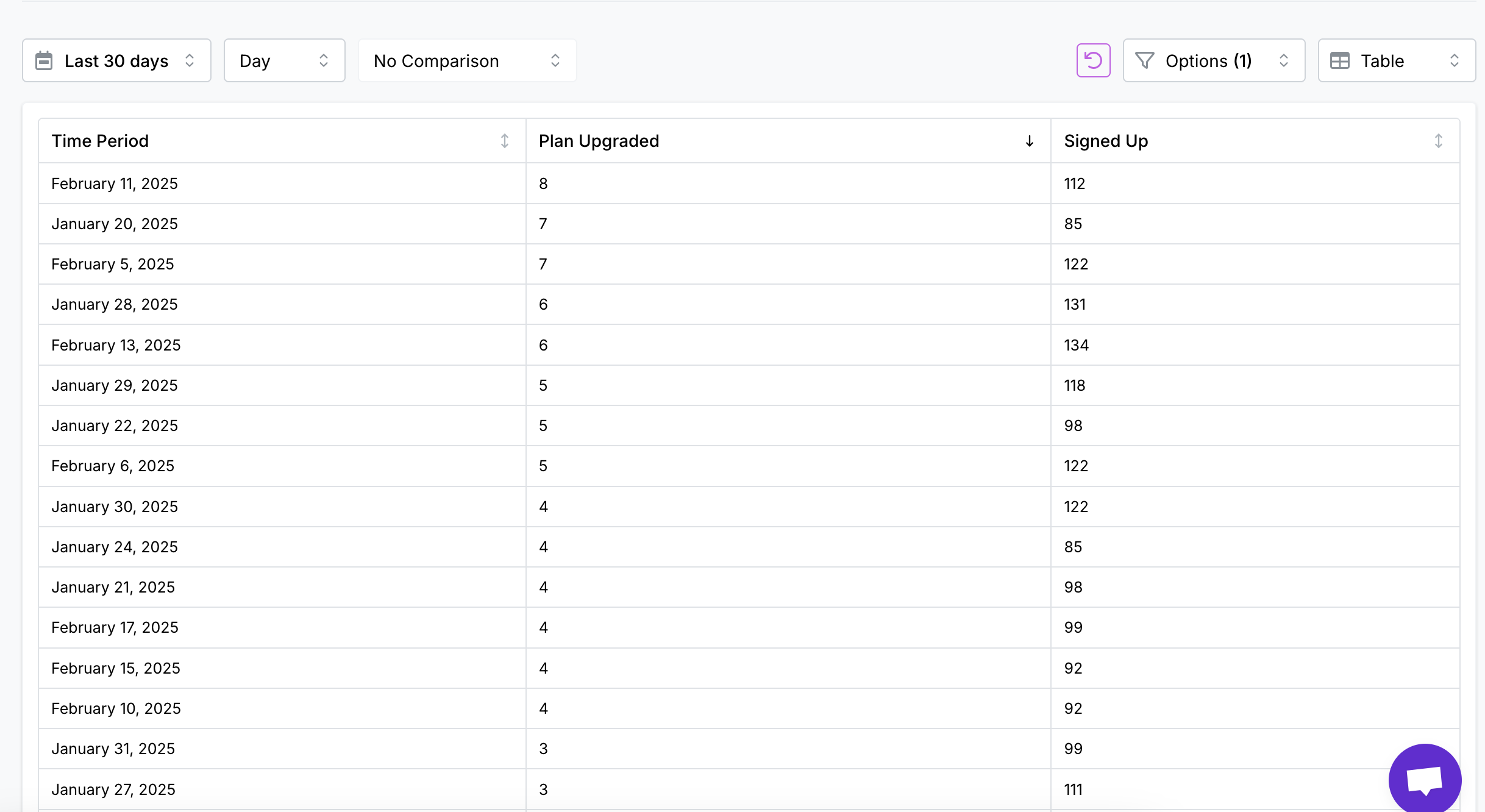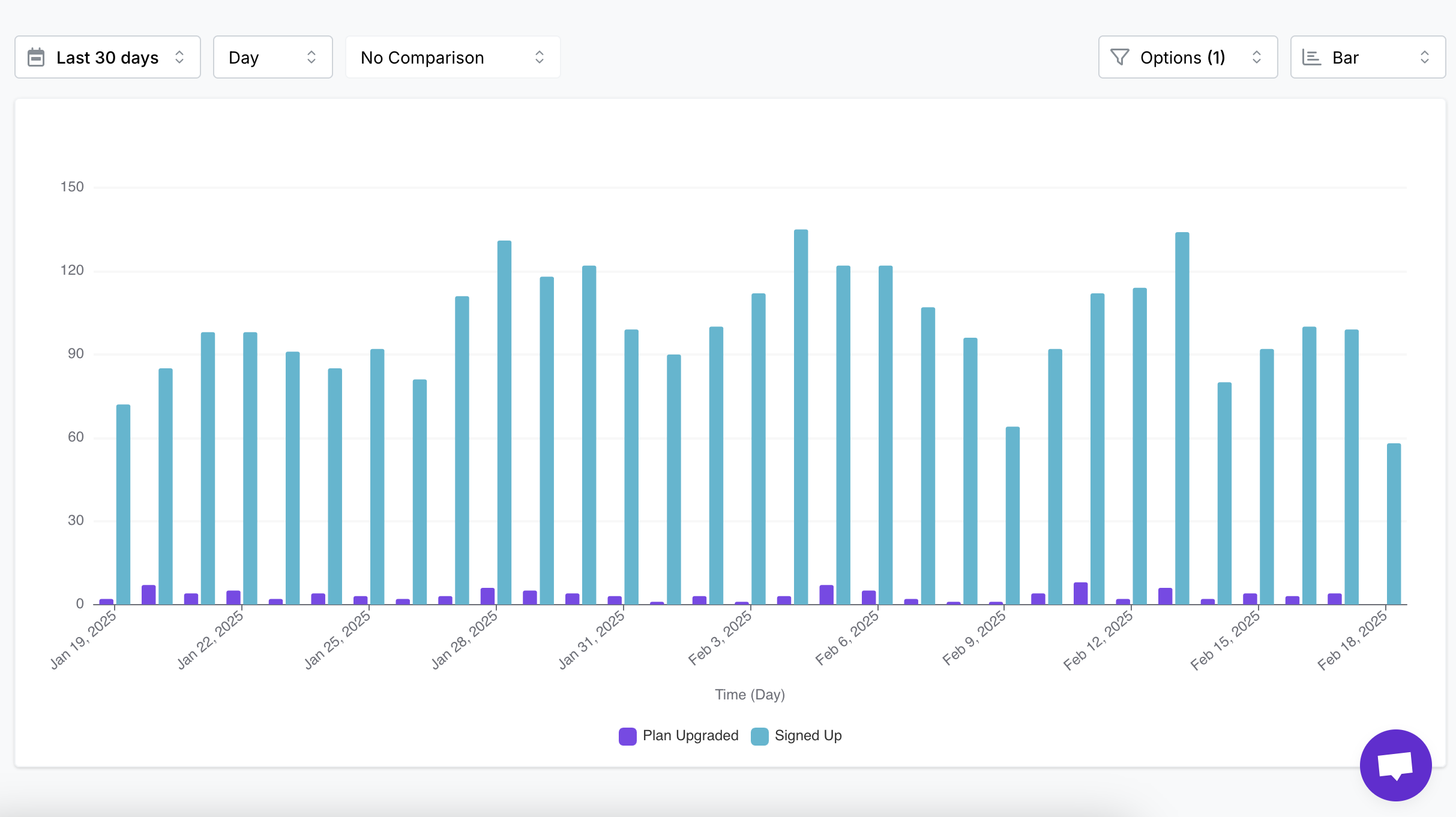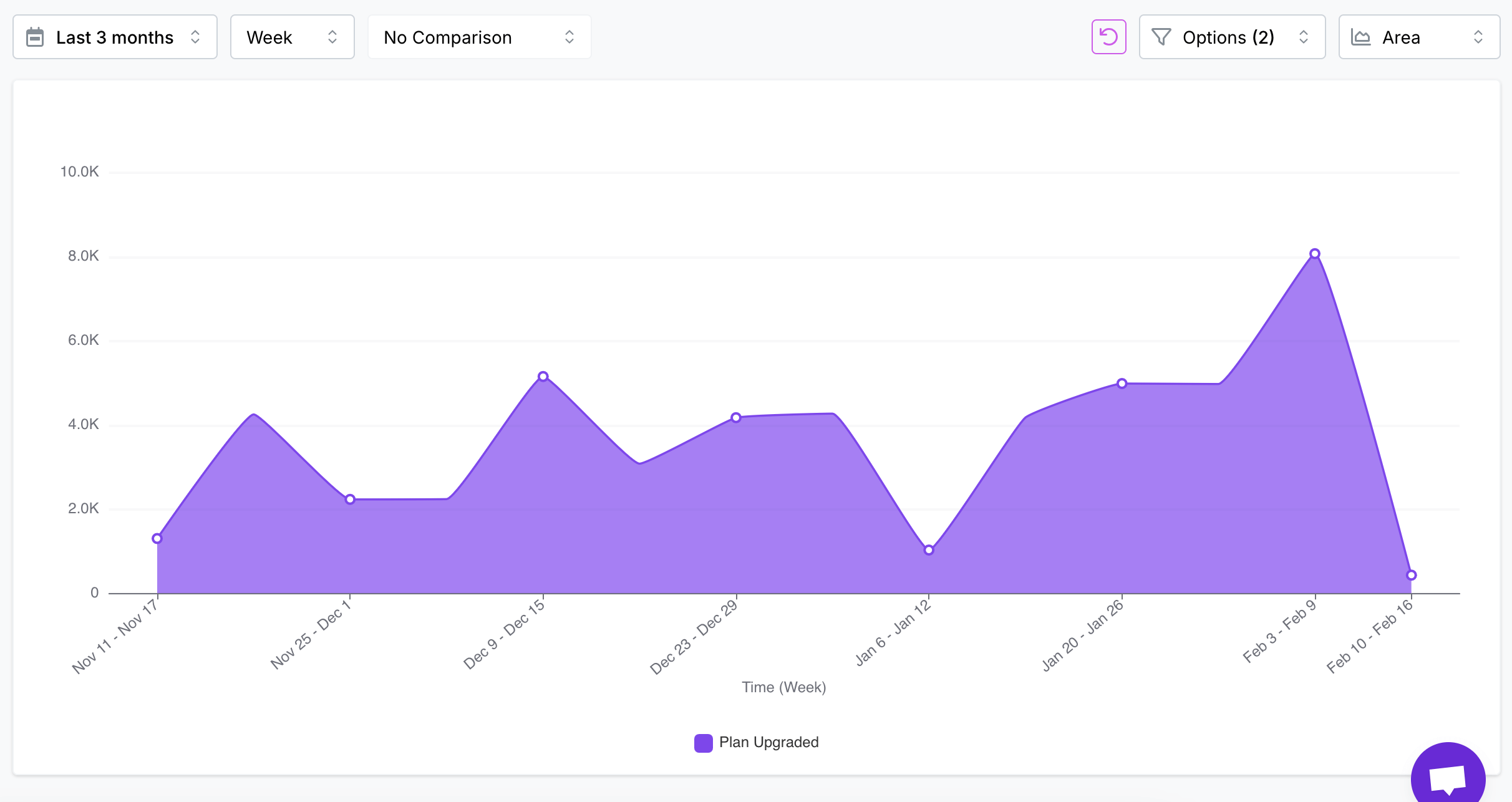 What it is: Track the daily, weekly, or monthly trajectory of crucial metrics like sign-ups, feature usage, content views, or purchases.
