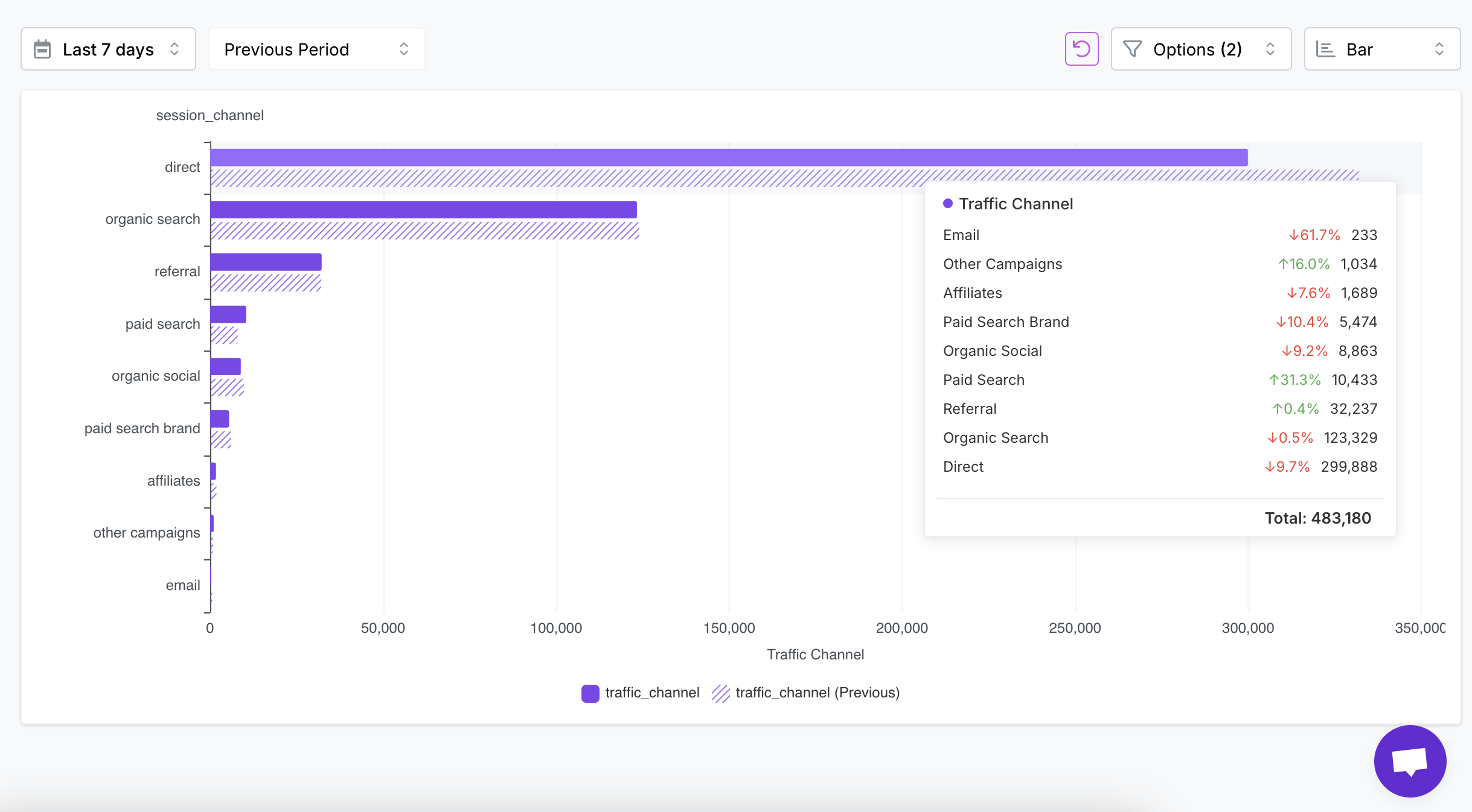 Example: Which channel brings in the most traffic?