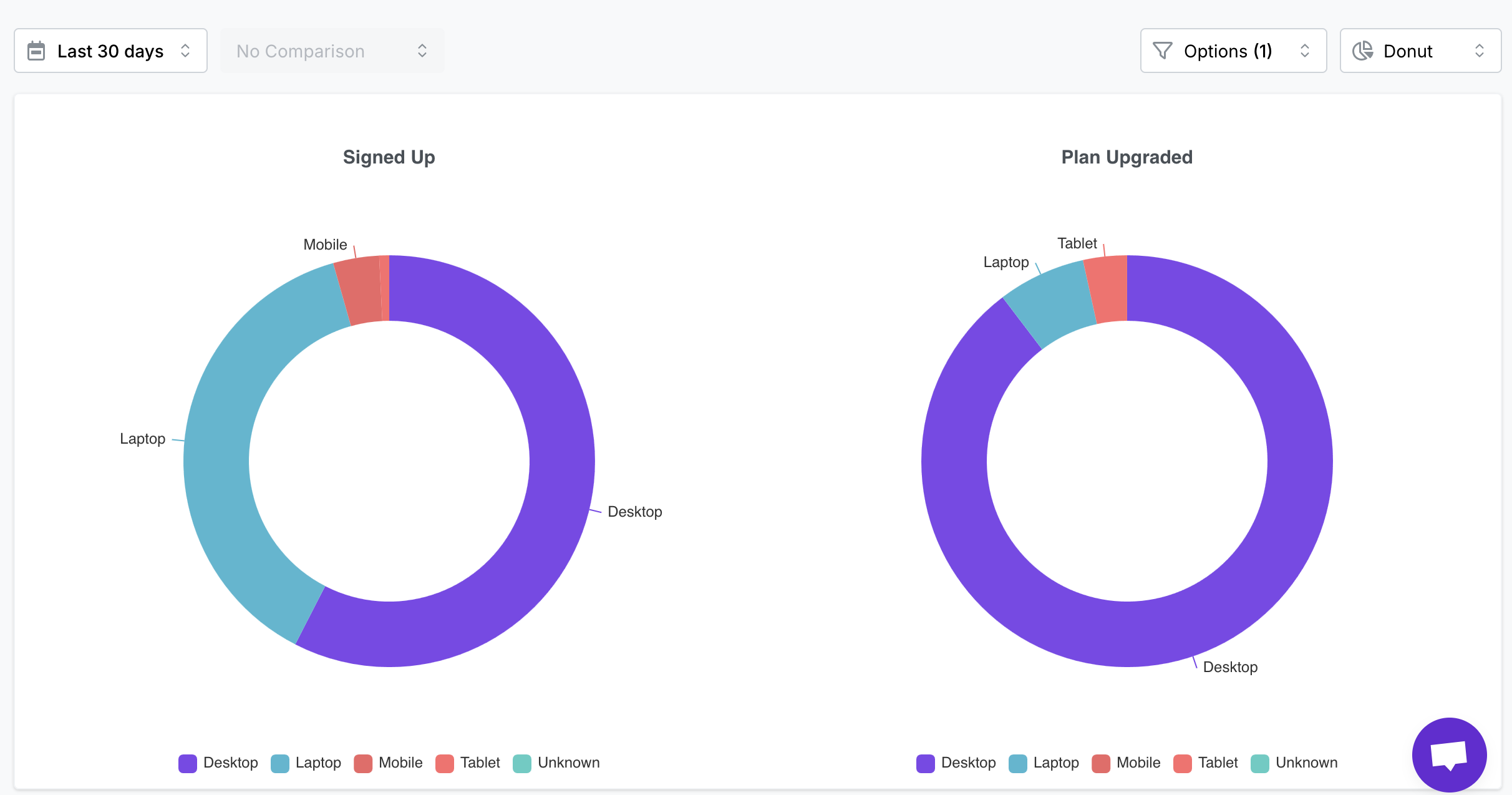 Usermaven gives you different chart options to see your data in a way that makes the most sense: